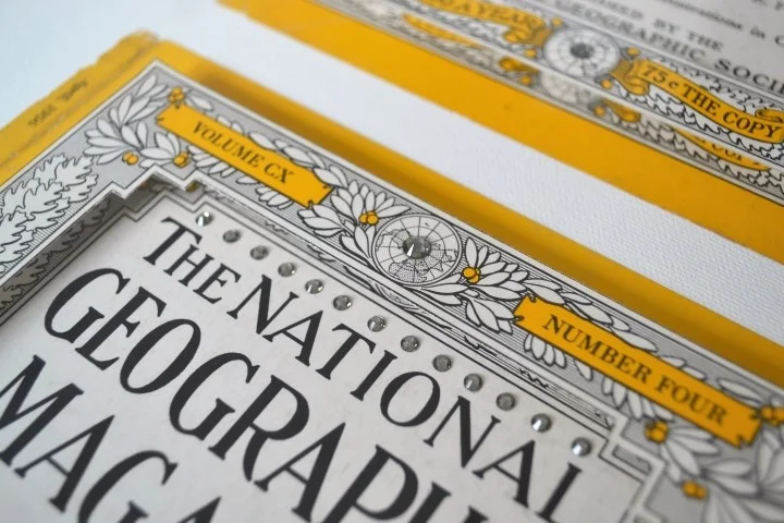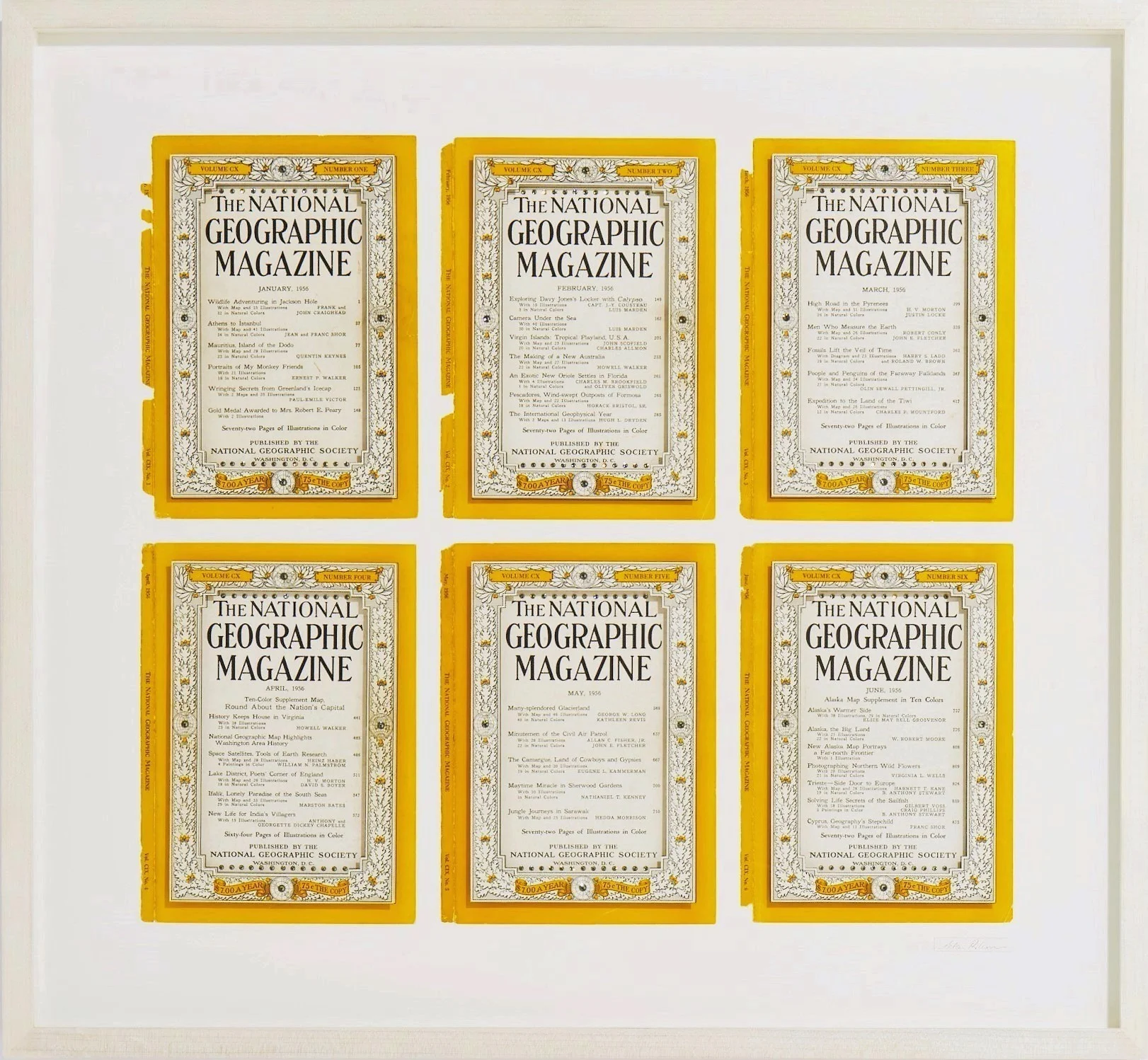 Evoking a sense of nostalgia, these iconic magazine covers show their individual history in the marks, tears and worn edges of the paper. The entire 12 issues from 1956 have been utilised: January through to June provide the background images while July through to December provide the raised decorative borders.