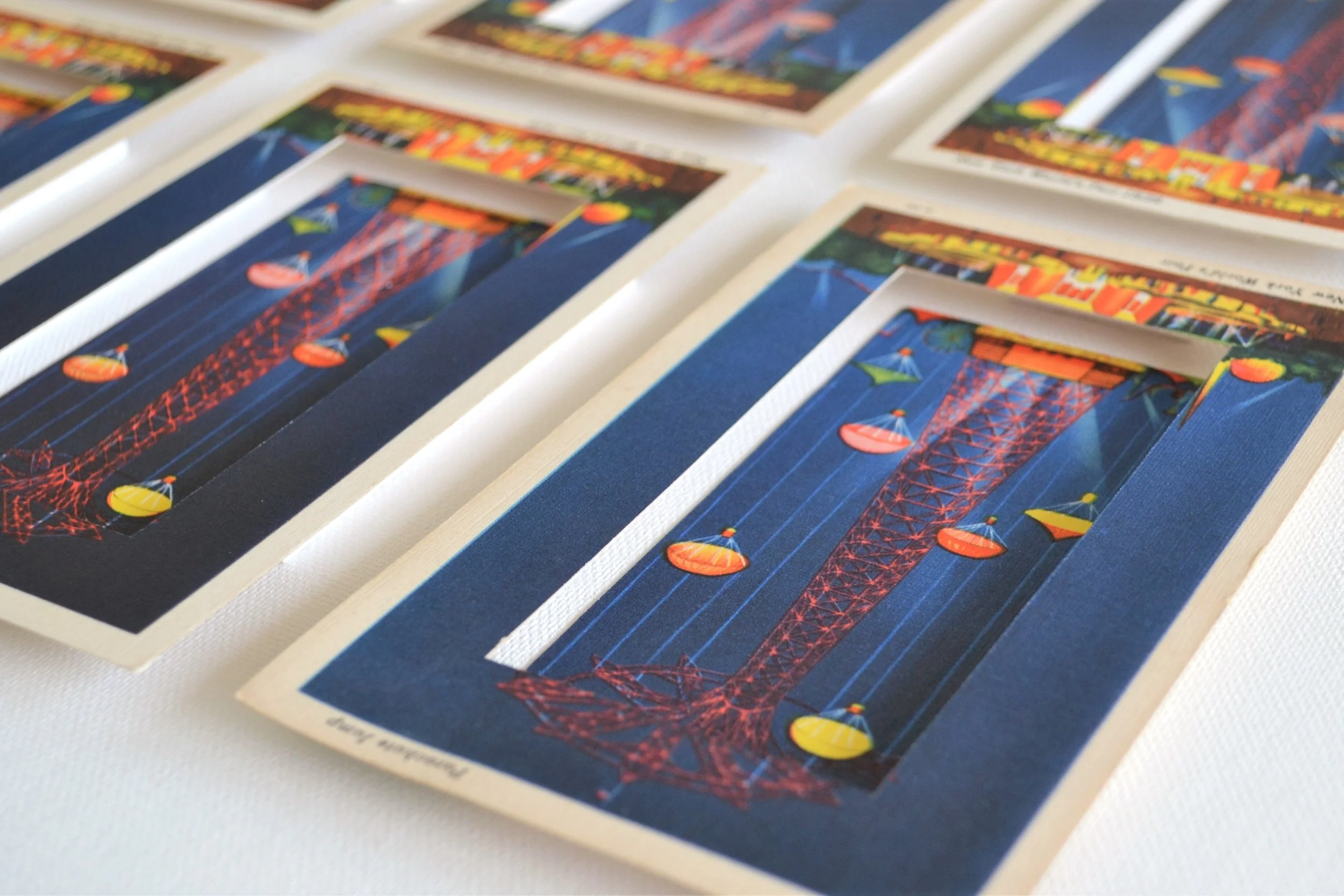 The hand-drawn illustrations depict the iconic Parachute Jump, designed and built for the New York World’s Fair of 1939 and now residing at Coney Island.