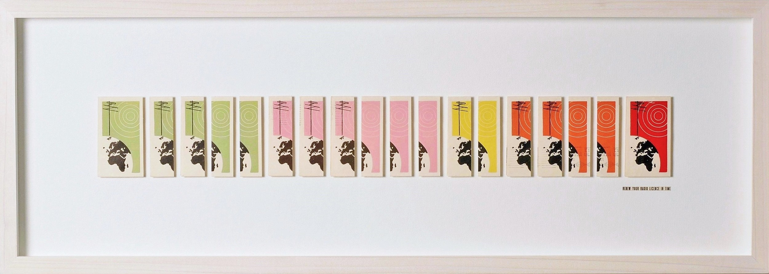 The images on these segments formed part of an envelope which displayed a public service announcement advising the population about their radio licence renewal. The vibrant colours and general aesthetic of the graphics generate a sensation of nostalgia for the mid-century era.